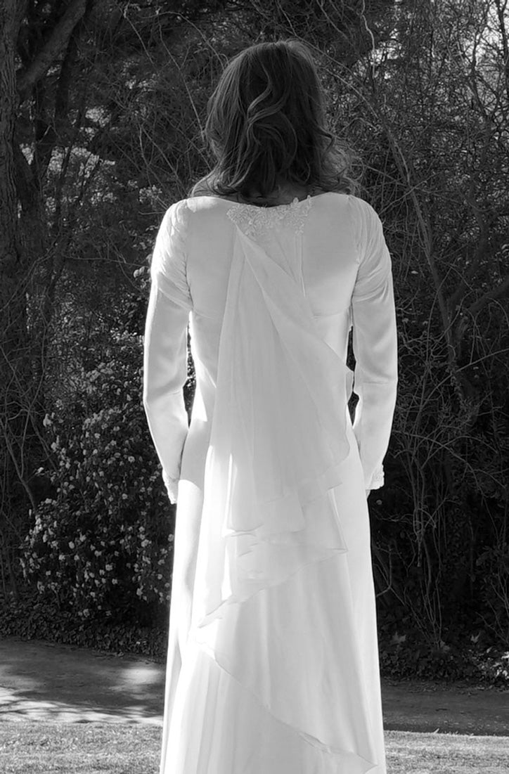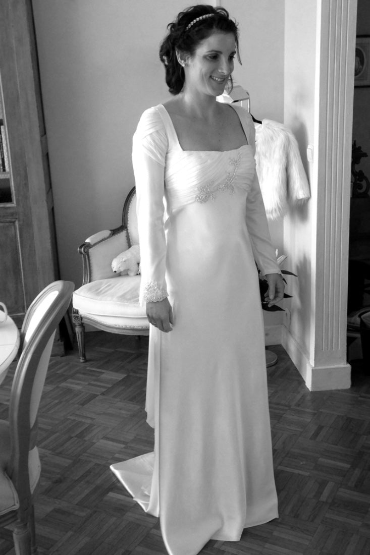 Estelle said yes in Paris with a silk satin and chiffon creation inspired by Napoleon’s iconic wife, Joséphine Bonaparte. This empire style dress is that of a princess of yesteryear, but without the strictures of the past. This dress is designed to embody a strong personality with a touch of romance, as only such an empress and her history could have inspired.